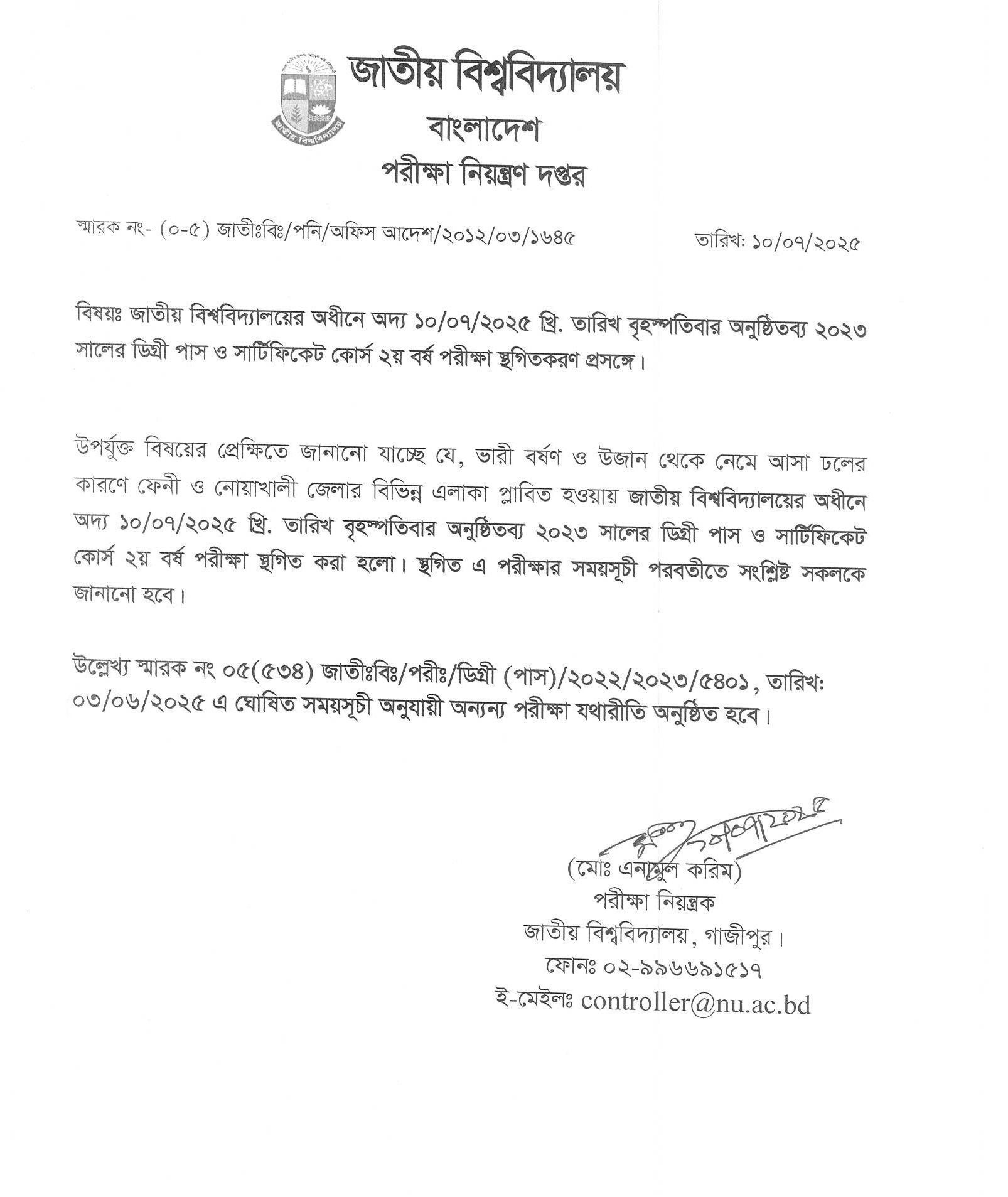 Degree Pass Exam স্থগিত