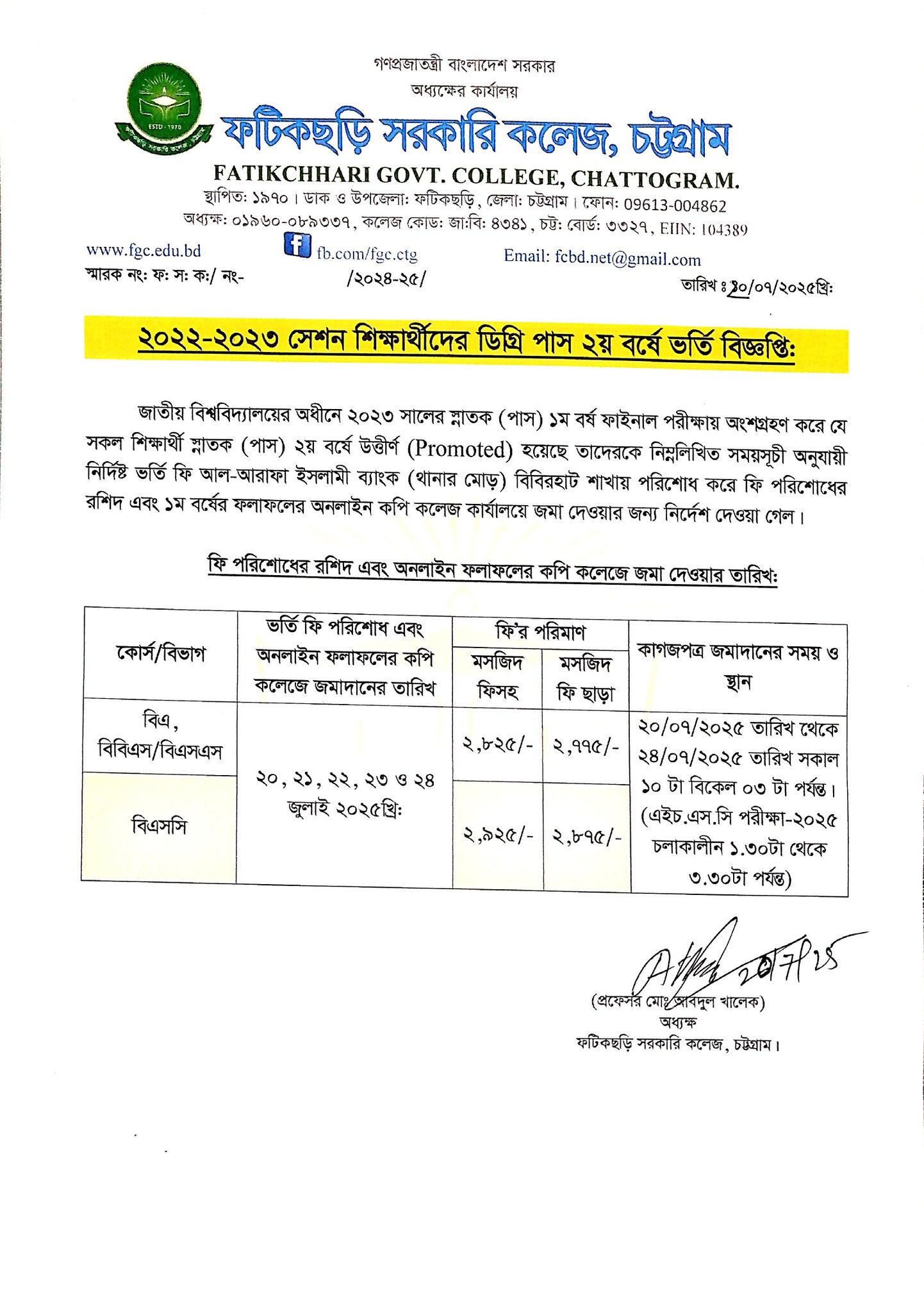 Degree Pass 2nd Year Admission Notice
