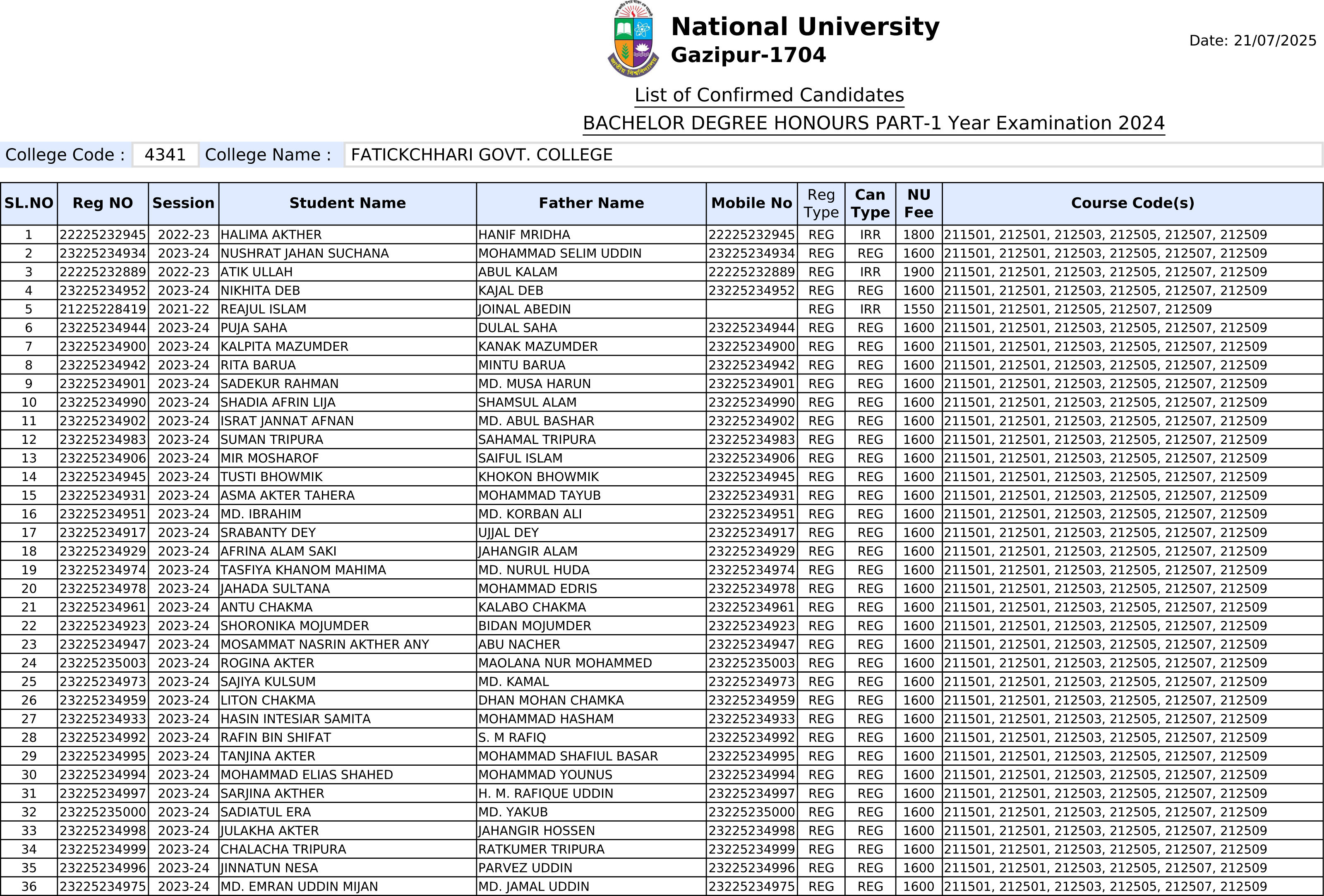 HONS 1st Year Exam 2024 , Sub: Accounting এর ফরম ফিলাপ যারা করেছে তাদের তথ্য দেয়া হলো। কেউ বাদ পড়লে আগামিকালের মধ্যে যোগাযোগ করতে হবে কলেজে।