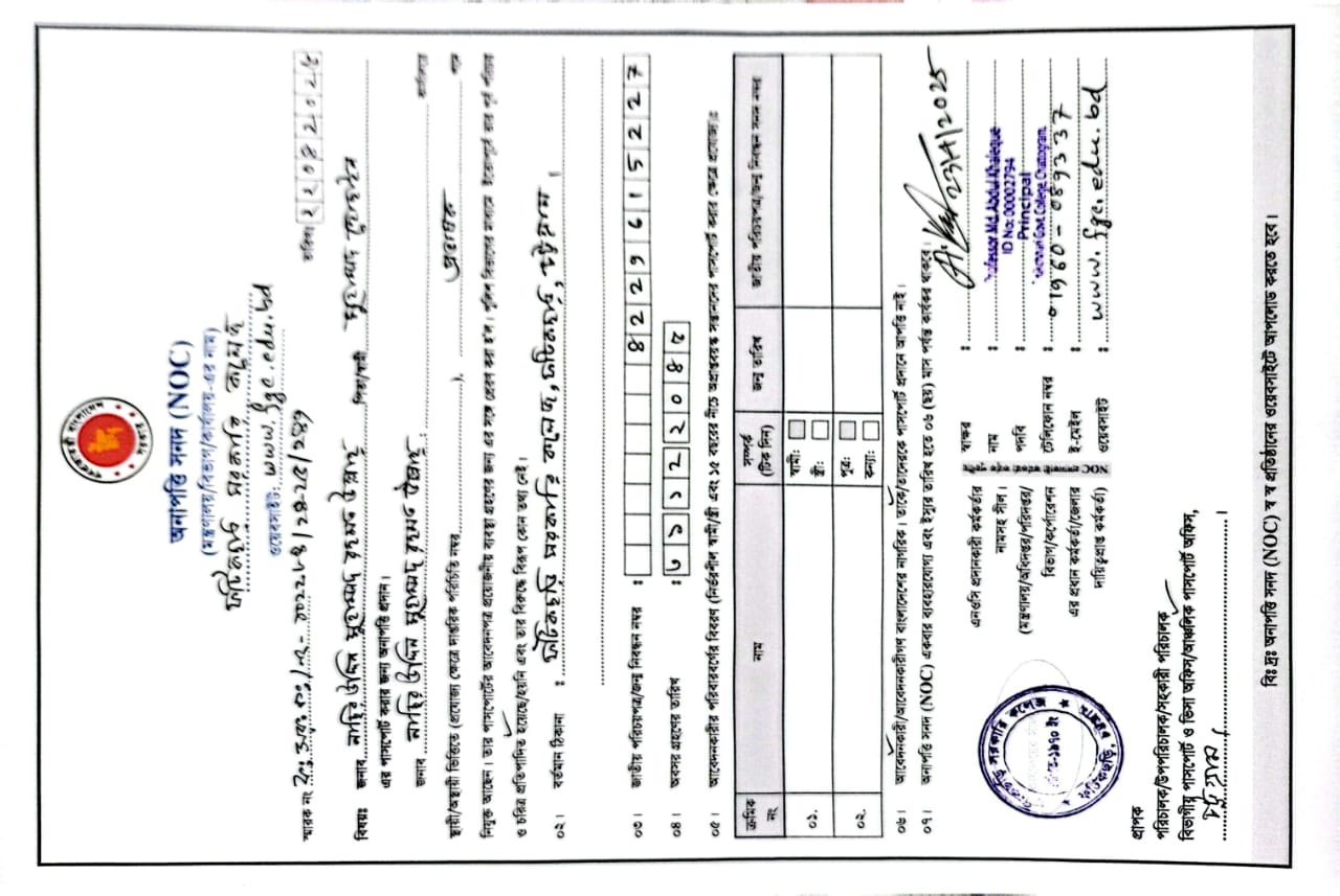 NOC for Nasir Uddin Muhammad Rahmat Ullah, Lecturer, Political Science