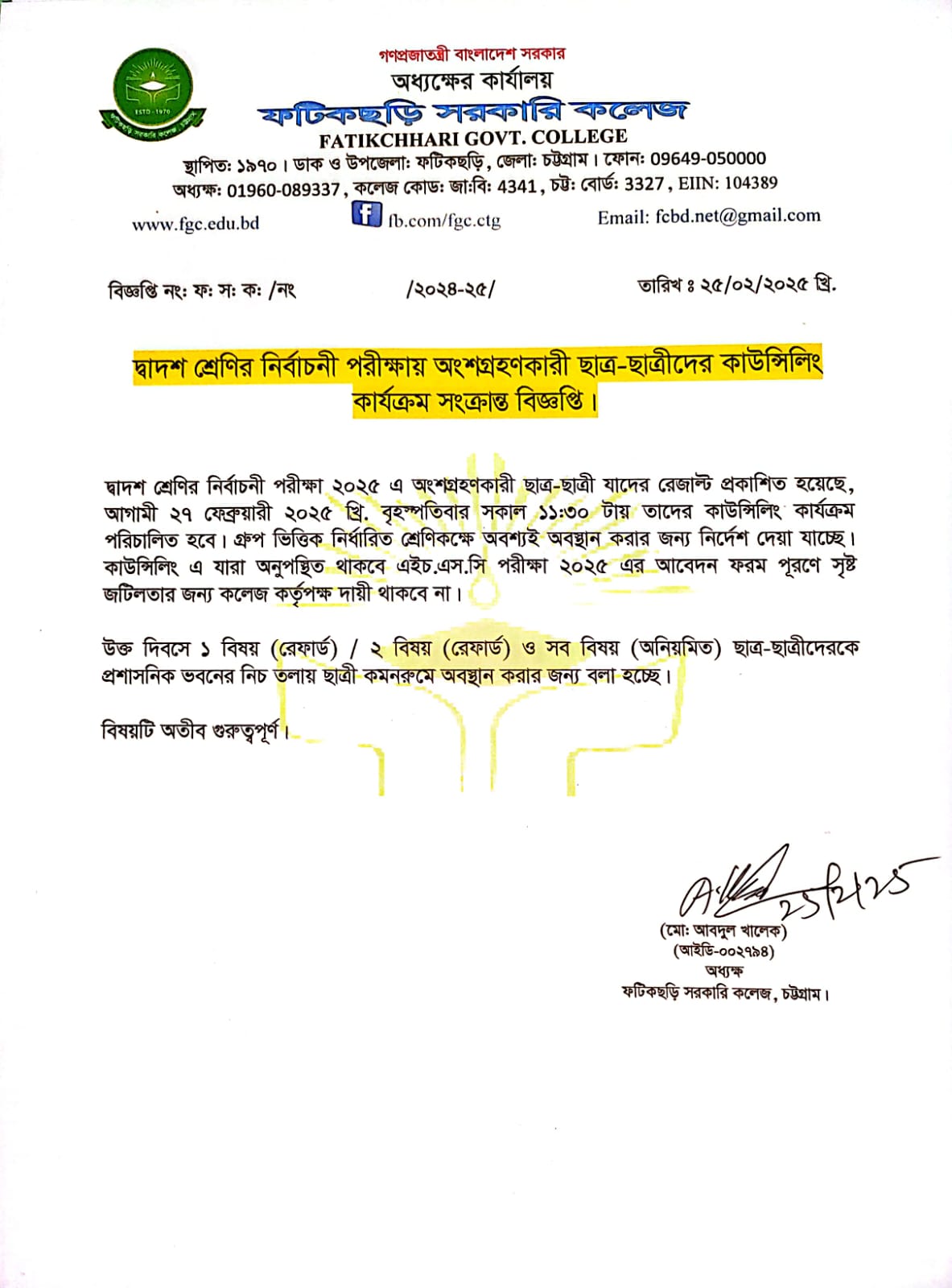 ফটিকছড়ি সরকারি কলেজ, চট্টগ্রাম।
