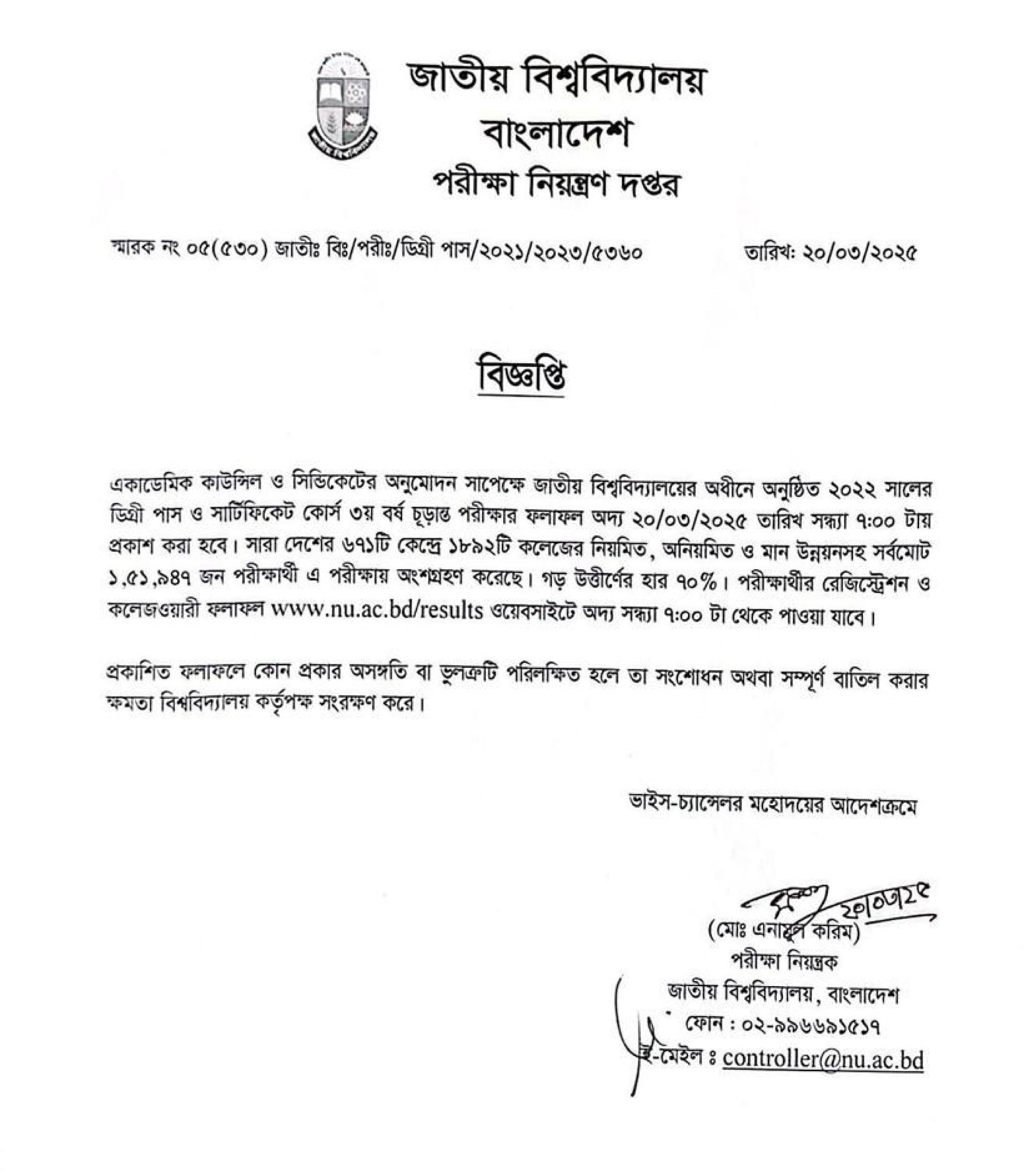 Result (জাতীয় বিশ্ববিদ্যালয়)